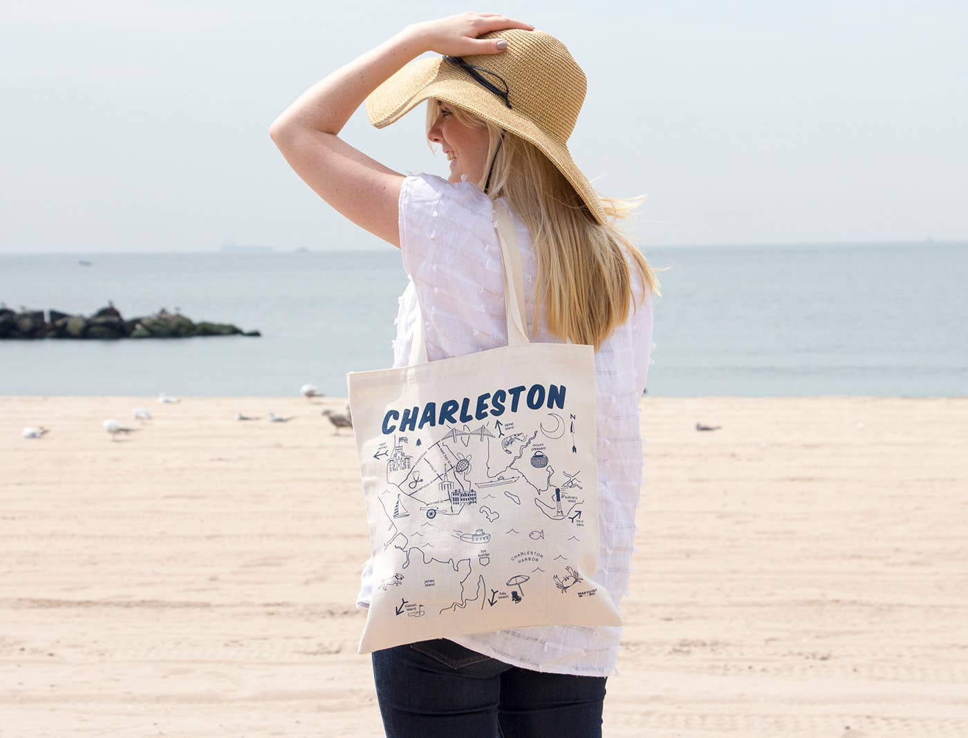 • ORIGINAL DESIGN: Featuring hand-drawn map design of Charleston's beloved landmarks, this tote captures the city's vibrant culture and historic beauty. It's not just a bag; it's a piece of Charleston's story.