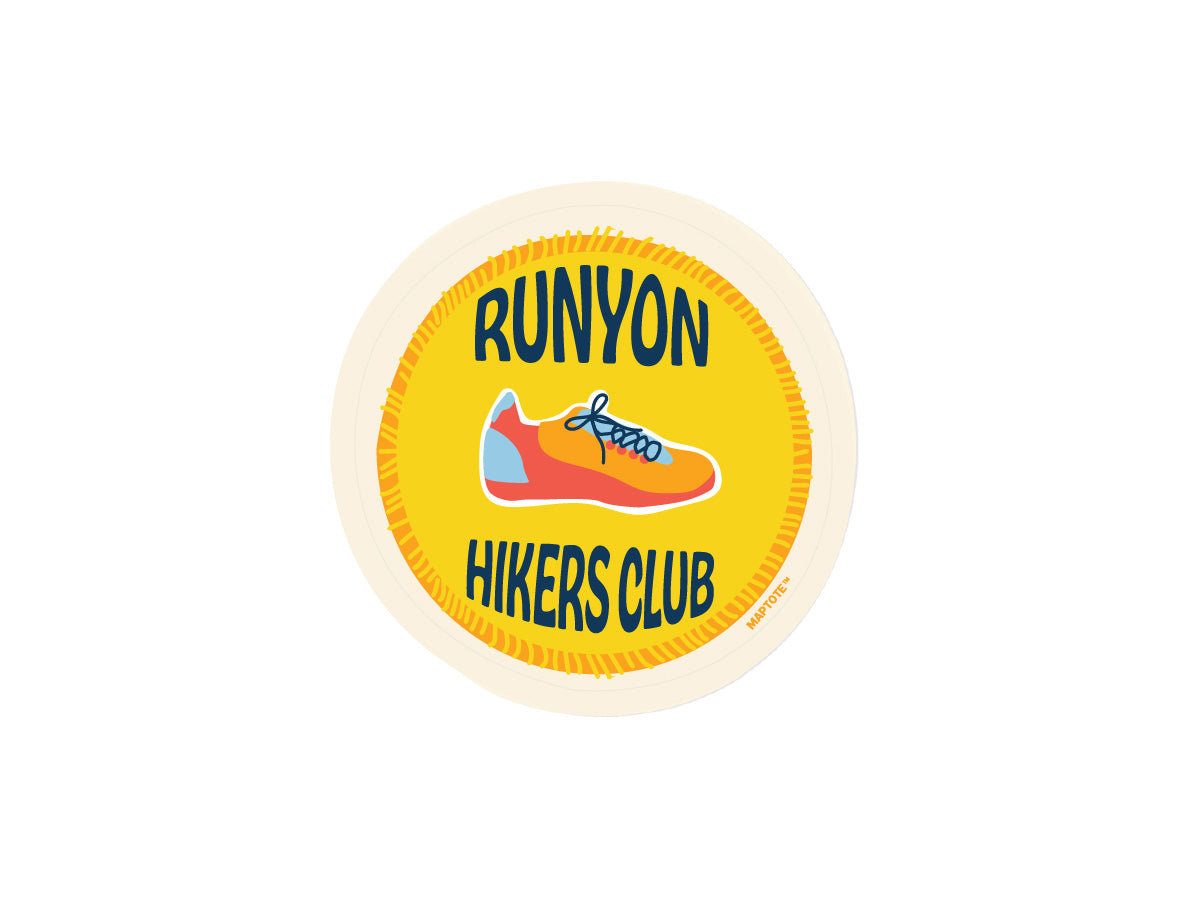 Crafted from durable matte laminated polypropylene, this sticker is made to keep up with your pace. The patch-inspired illustration gives it a classic, collectible look—perfect for runners, hikers, and anyone who considers Runyon their go-to reset spot.