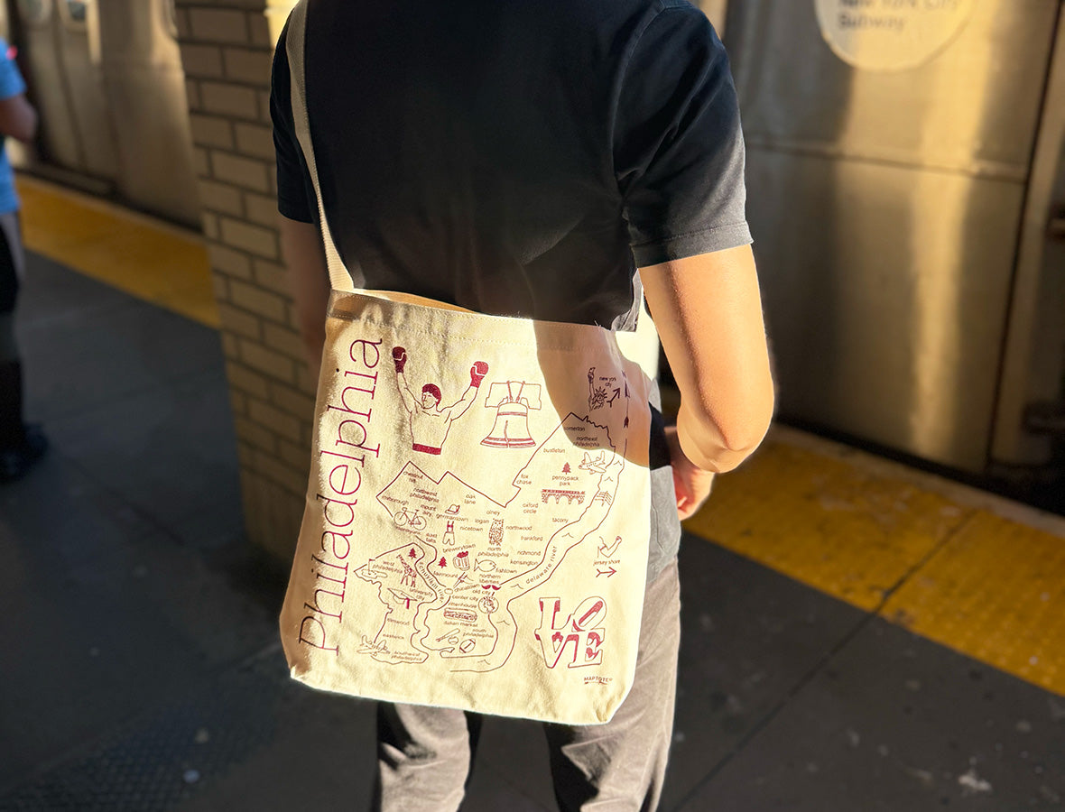 • PHILADELPHIA PRIDE: Featuring a stylish map design that pays homage to Philadelphia, this tote lets you showcase your love for the city's rich history and vibrant culture.